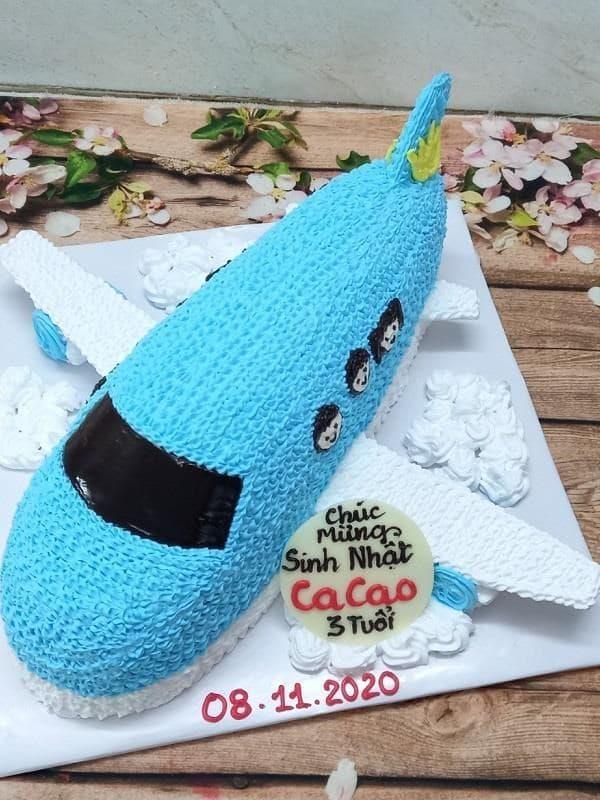 Bánh kem hình máy bay được tạo hình từ cốt bánh kích thước 20x30cm.Để đặt bánh lớn hơn hoặc nhỏ hơn liên hệ Zalo 0966210855. Khuyến mại đèn cầy và 1 bộ dao thìa.Gía bánh trên chưa bao gồm phí vận chuyển